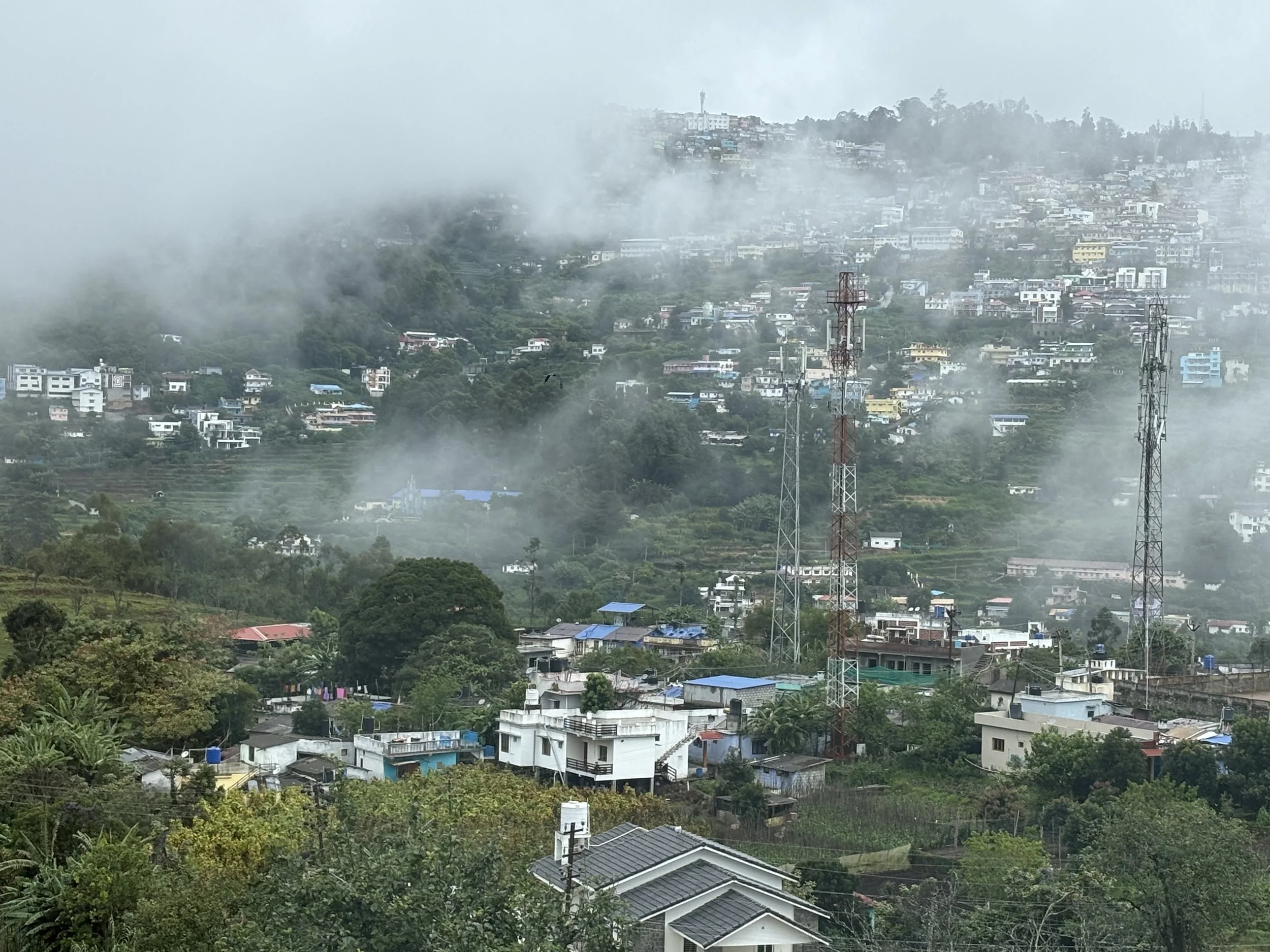 மலைகளுக்கு மேலே எங்கள் விடுதி இருந்தது. கண்டுப்பிடிக்க சற்று கடினமாக இருந்தாலும் இங்க சுற்றி-அங்க சுற்றி இறுதியில் கண்டிப்பிடித்து சென்றடந்தோம். சென்றவுடன் அங்கு உள்ள ஊழியர்கள் எங்களை வரவேற்று எங்களின் அறைக்கு அழைக்குச் சென்றன. மிக பிரம்மாண்டமான அறை கிடைத்தது எங்களுக்கு. நாலாந் பக்கமும் சாளரங்கள். அதில் இருந்து வெளியே மலைகளின் அழகு. மேகம் வந்து செல்வது மலைகளை முத்தமிட்டு செல்வது போல் காட்சி. காண்பதற்கு கண்கள் வேண்டும் என்று சொன்னாலும் அனுபவிக்க நல்ல உடலாரோக்கியம் வேண்டும் என்று சொல்லியாக வேண்டும்! தமிழரின் விருந்தோம்பலுக்கேற்ப, வந்தவுடன் நம்மிடம் “சாப்பிட என்ன வேணும்” என்று கேட்டு எங்களுக்கு சமைத்து கொடுத்தனர். அதன்பின் நாம் நகரத்தை சுற்றிப் பார்க்க மாலை நாலு மணியளவிற்கு புறப்படுச் சென்றோம்.